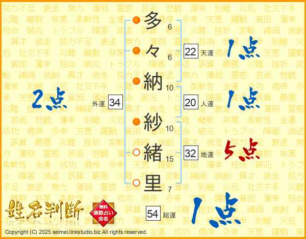 多々納紗緒里さんの外運は34画の2点!