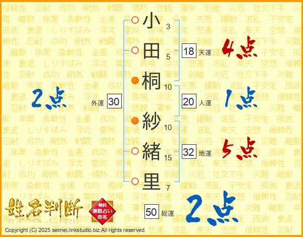 小田桐紗緒里さんの総運は50画の2点!
