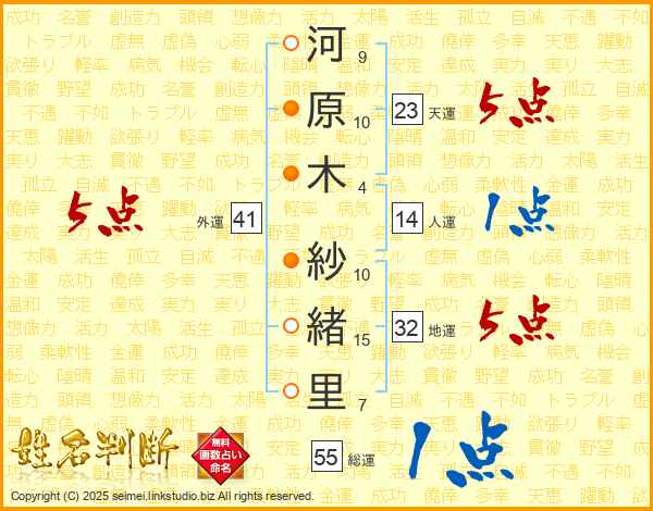 河原木紗緒里さんの外運は41画の5点!