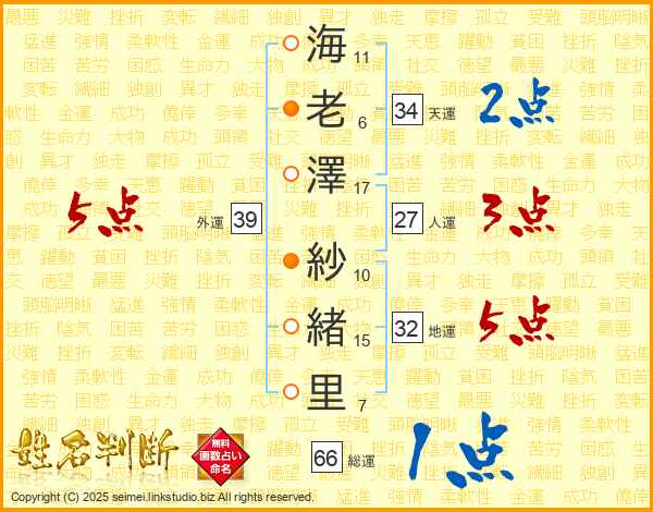 海老澤紗緒里さんの総運は66画の1点!