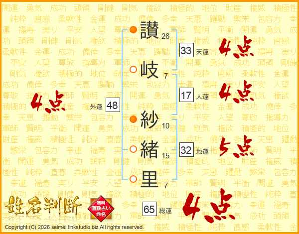 讃岐紗緒里さんの総運は65画の4点!