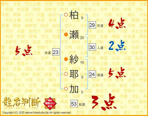 柏瀬紗耶加さんの総運は53画の3点!