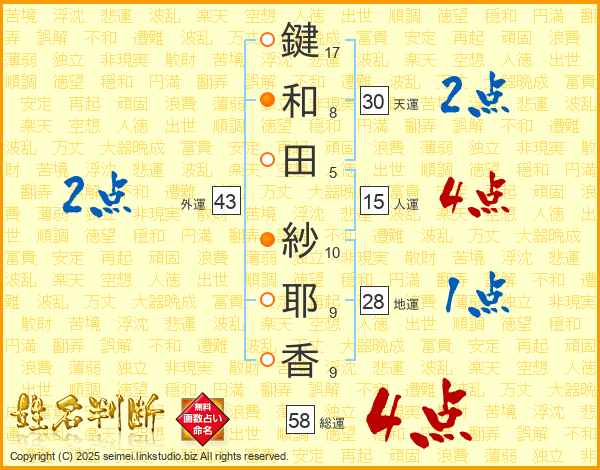 鍵和田紗耶香さんの総運は58画の4点!