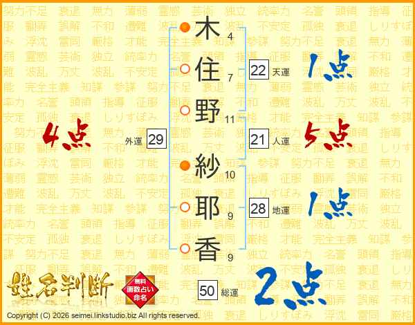 木住野紗耶香さんの外運は29画の4点!