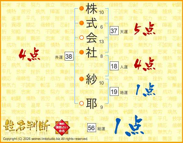株式会社紗耶さんの総運は56画の1点!