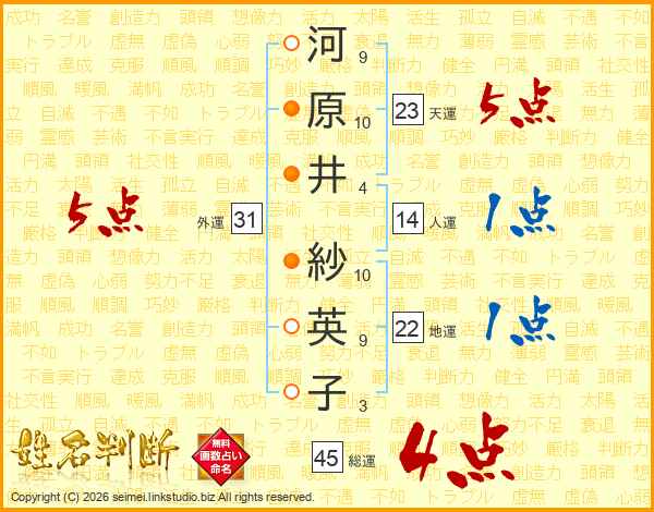 河原井紗英子さんの総運は45画の4点!