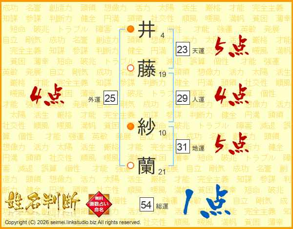 井(4画)藤(19画) 紗(10画)蘭(21画)