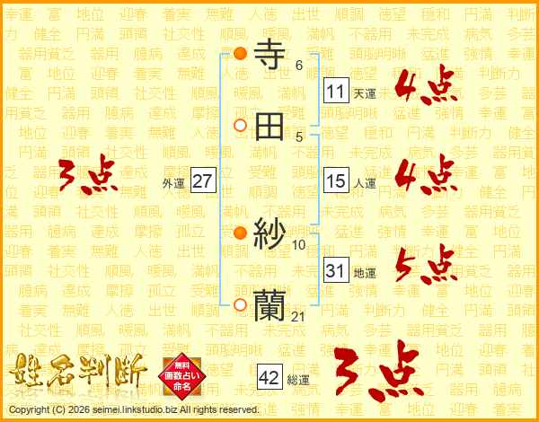 寺田紗蘭さんの天運は11画の4点!