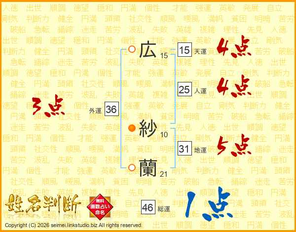 広紗蘭さんの外運は36画の3点!