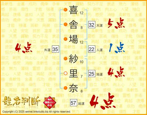 喜舎場紗里奈さんの外運は35画の4点!