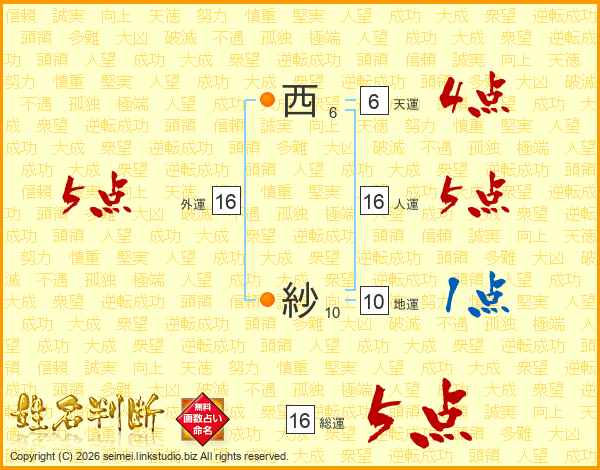 西紗さんの総運は16画の5点!