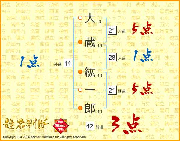 大蔵紘一郎さんの天運は21画の5点!