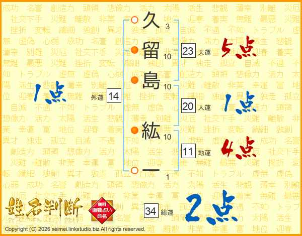 久留島紘一さんの地運は11画の4点!