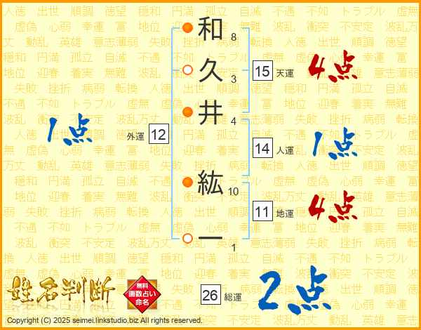 和(8画)久(3画)井(4画) 紘(10画)一(1画)