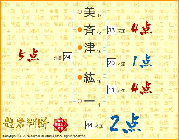 美斉津紘一さんの総運は44画の2点!