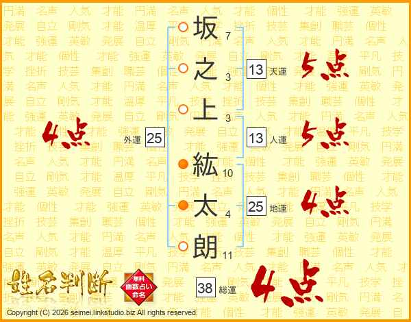 坂之上紘太朗さんの総運は38画の4点!