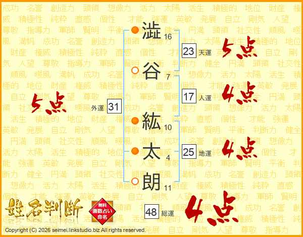 澁谷紘太朗さんの総運は48画の4点!