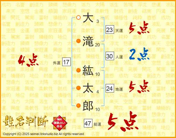 大滝紘太郎さんの総運は47画の5点!
