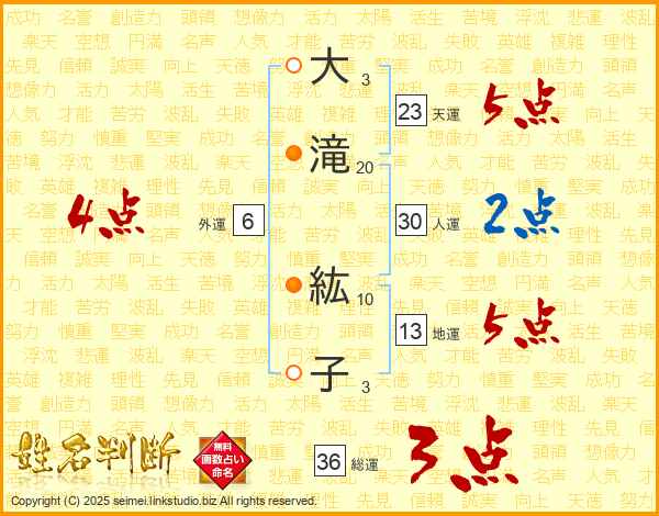 大滝紘子さんの総運は36画の3点!