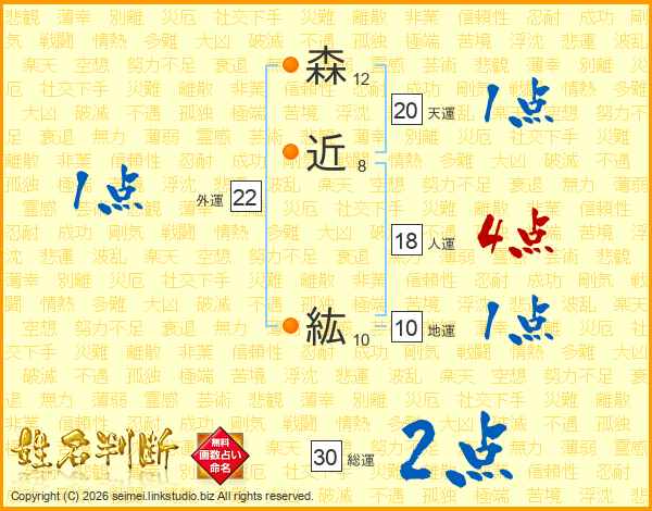 森近紘さんの総運は30画の2点!