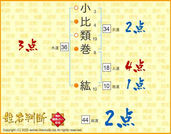 小比類巻紘さんの総運は44画の2点!