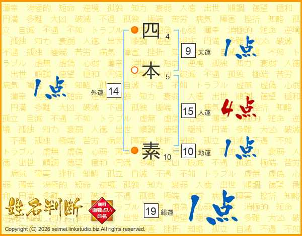 四本素さんの総運は19画の1点!