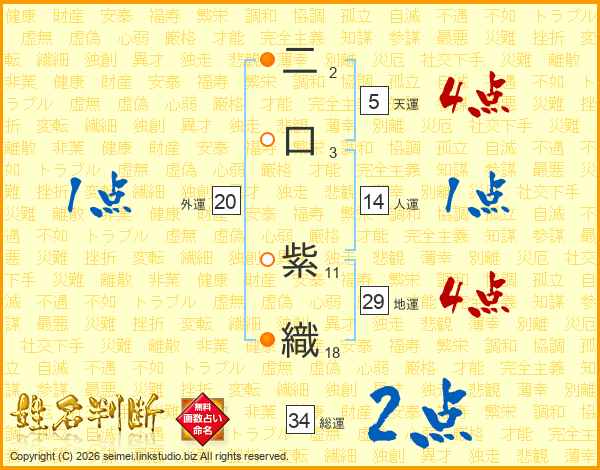 二口紫織さんの総運は34画の2点!