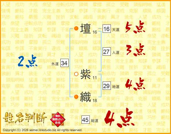 壇紫織さんの総運は45画の4点!