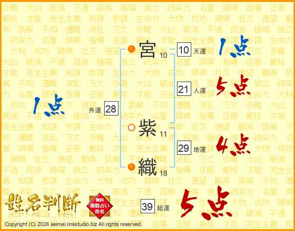 宮紫織さんの総運は39画の5点!
