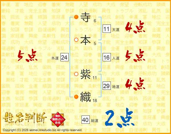 寺本紫織さんの天運は11画の4点!