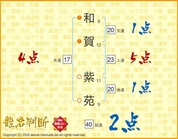 和(8画)賀(12画) 紫(11画)苑(9画)