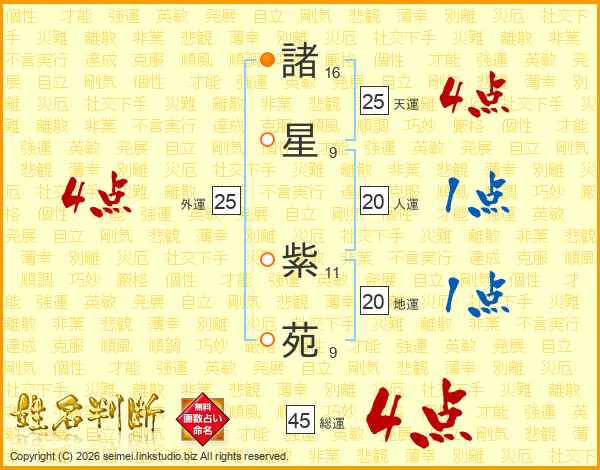 諸(16画)星(9画) 紫(11画)苑(9画)