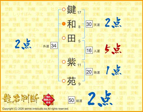 鍵和田紫苑さんの天運は30画の2点!