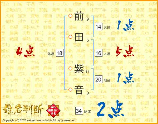 前田紫音さんの天運は14画の1点!
