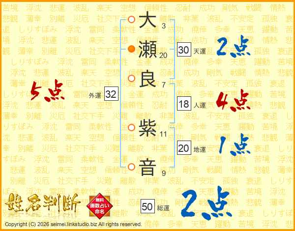 大瀬良紫音さんの総運は50画の2点!