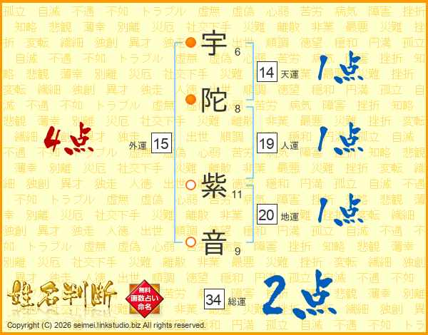 宇(6画)陀(8画) 紫(11画)音(9画)