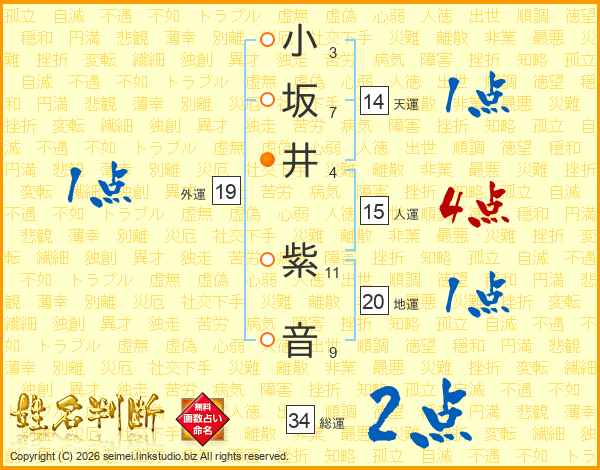 小(3画)坂(7画)井(4画) 紫(11画)音(9画)