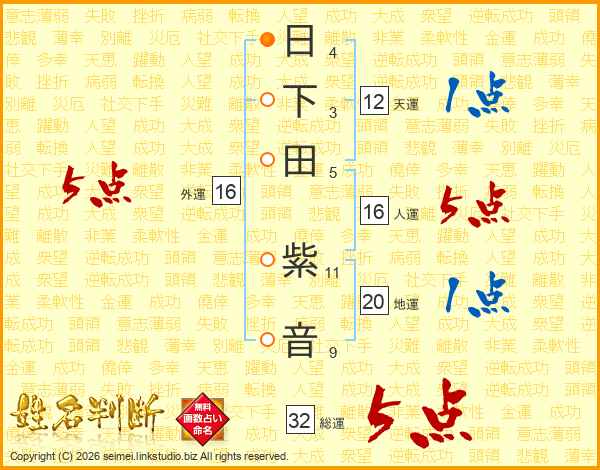 日下田紫音さんの総運は32画の5点!