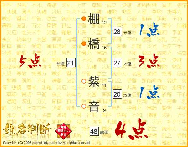 棚橋紫音さんの外運は21画の5点!