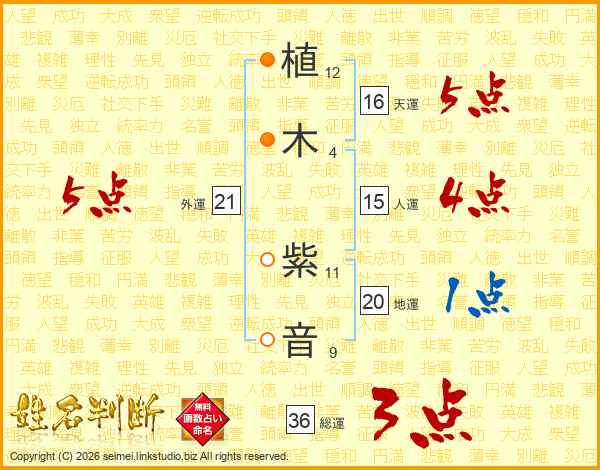 植木紫音さんの総運は36画の3点!