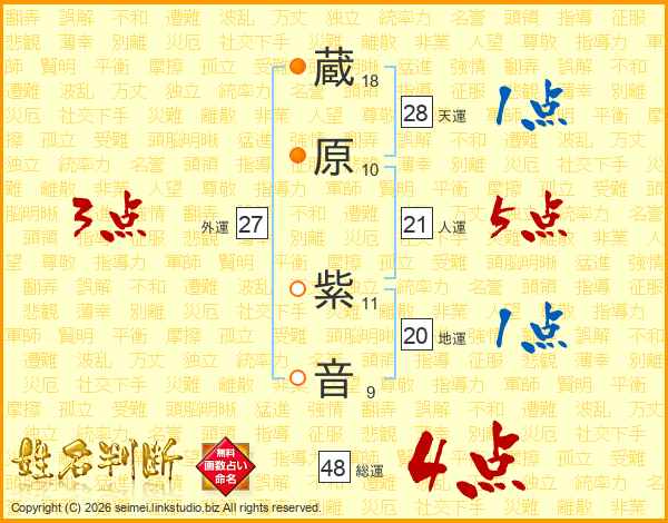 蔵原紫音さんの総運は48画の4点!