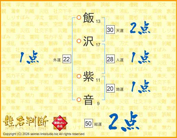 飯沢紫音さんの総運は50画の2点!