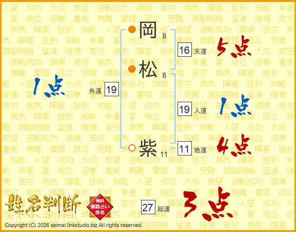 岡松紫さんの天運は16画の5点!