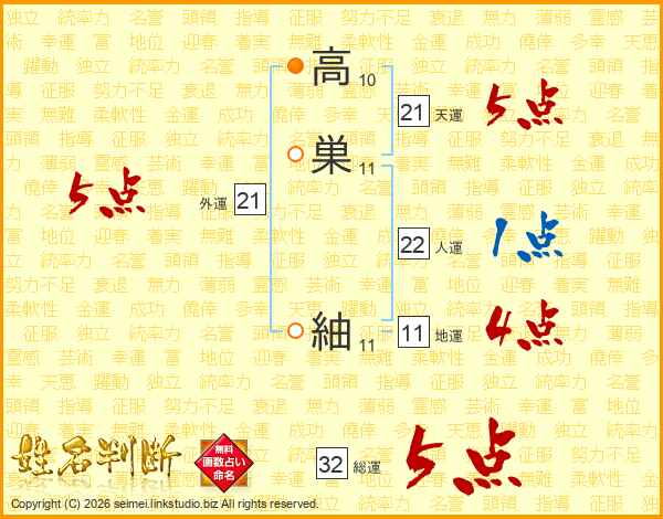 高巣紬さんの外運は21画の5点!