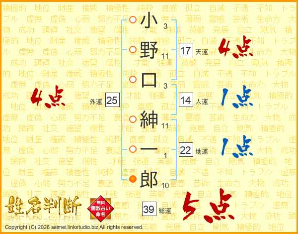 小野口紳一郎さんの総運は39画の5点!