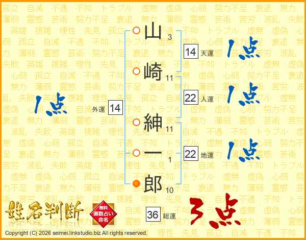 山崎紳一郎さんの総運は36画の3点!