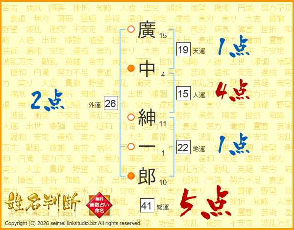 廣中紳一郎さんの総運は41画の5点!