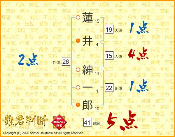蓮井紳一郎さんの総運は41画の5点!
