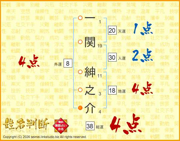 一関紳之介さんの総運は38画の4点!