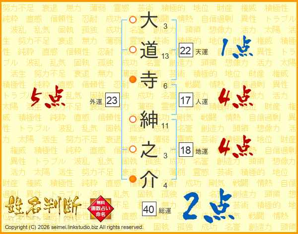 大(3画)道(13画)寺(6画) 紳(11画)之(3画)介(4画)